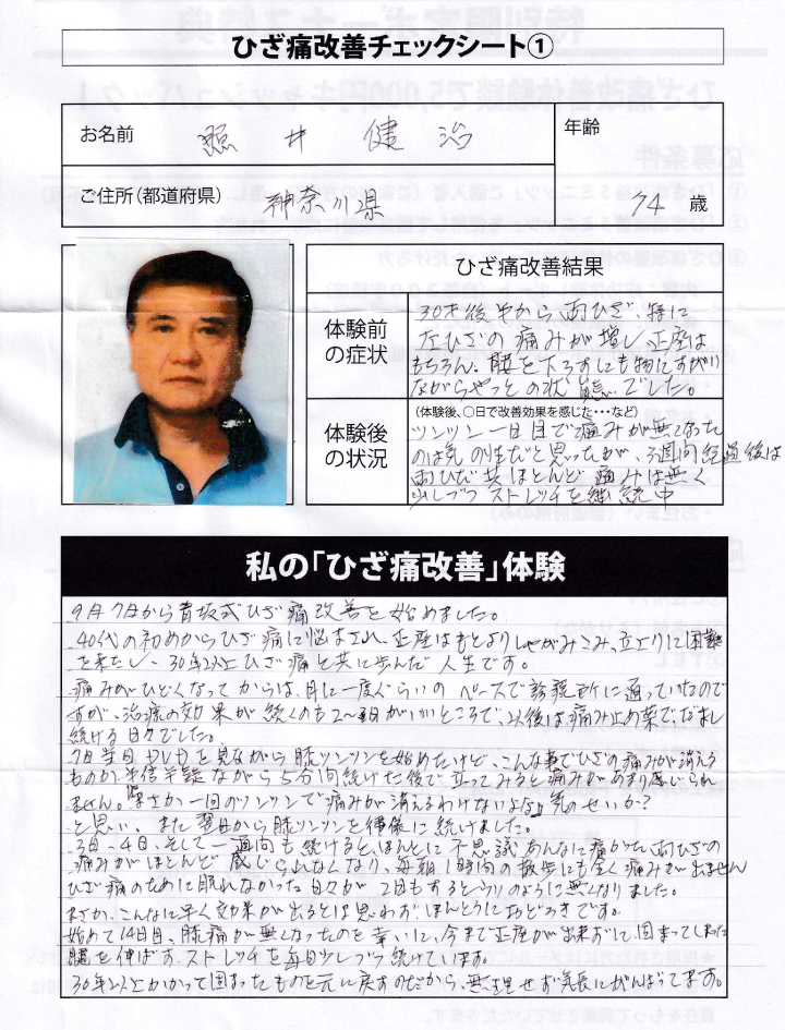 ひざ痛を克服し、痛みのない生活を送れていたということです。