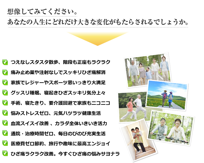 これから、これまでのひざ痛治療や改善方法にはなかった、